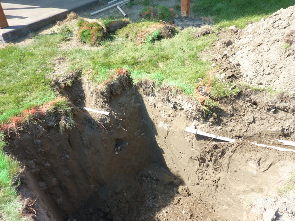 The break wasn't so bad. The mess was created when the sprinkler controller decided to turn the water on, washed out the far bank and filled the hole. Duhhhh.